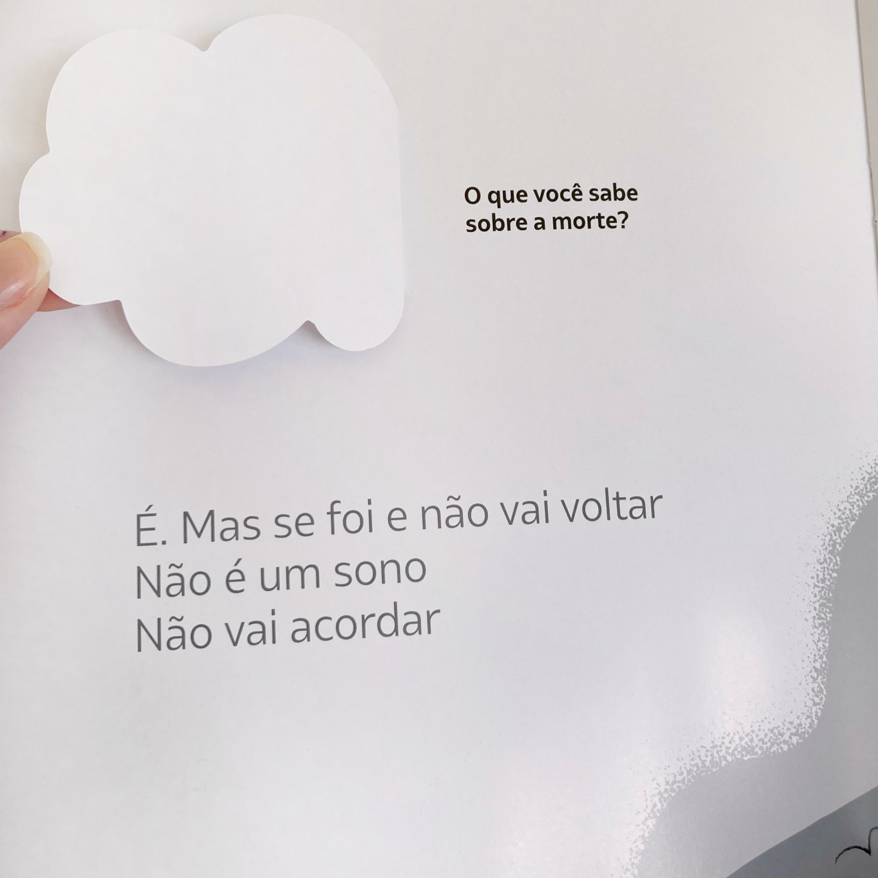 Livro em formato de poema que aborda o luto infantil de maneira sensível, com "perguntas escondidas" em formato pop-up, para que a criança escolha se quer conversar sobre aquele assunto nesse momento, respeitando seu próprio ritmo de elaboração da perda. Utilize o Estava tudo indo bem para a expressão de sentimentos, compreensão da situação e vivência do processo de luto.