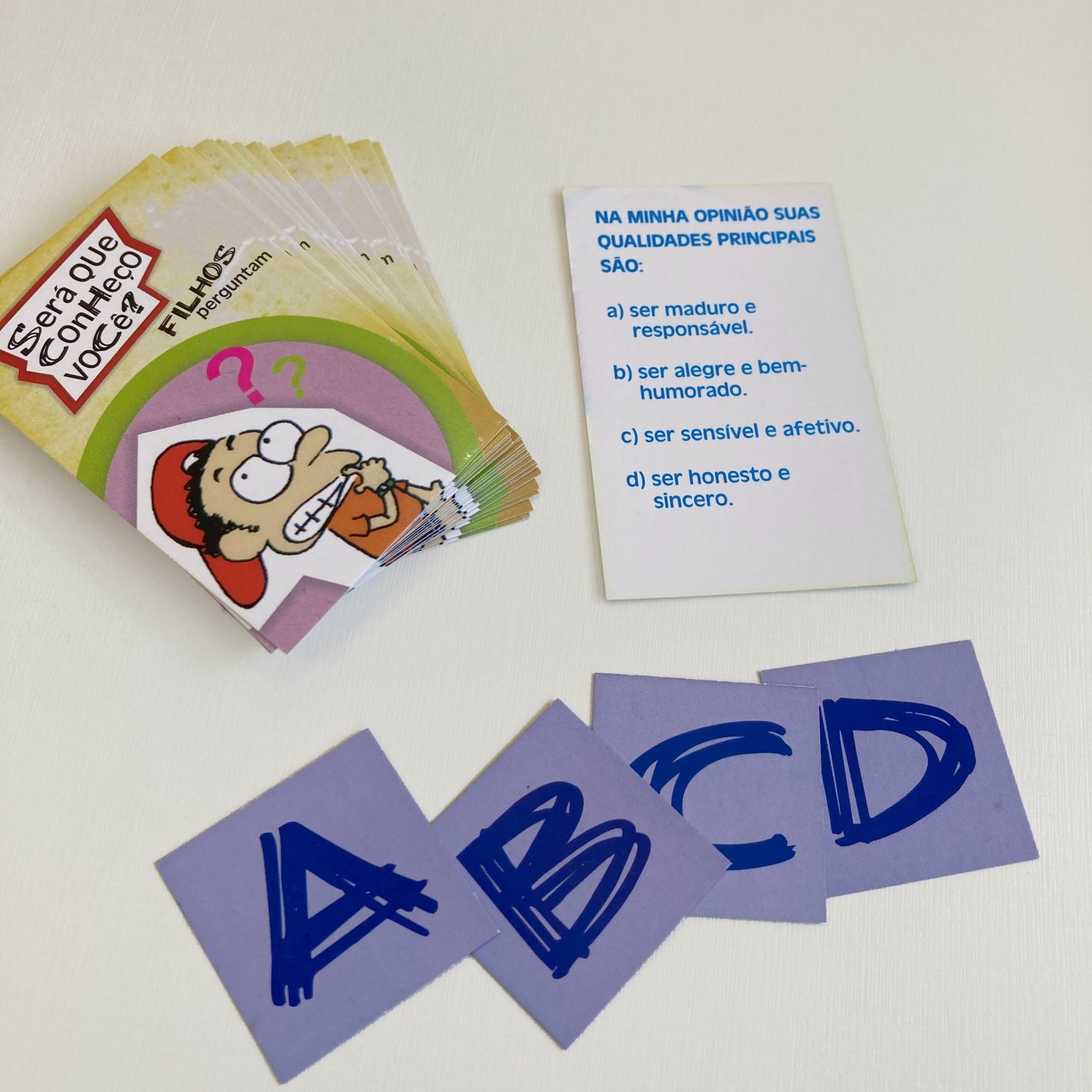 Será que conheço você? contém perguntas sobre o quotidiano, preferências e comportamentos dos pais e dos filhos pré-adolescentes. Cada pergunta é seguida de quatro alternativas de resposta, o jogador deve escolher a resposta que mais se parece com a escolha que o seu colega faria naquela situação. Permite que se conheçam e avaliem a relação, levantando as necessidades de mudanças na interação.