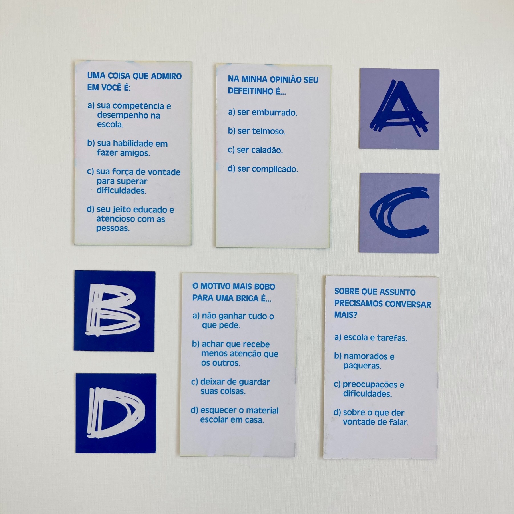 O que é que eu faço que te deixa irritado? O que é que o pai responderia sobre o filho? E o filho sobre o pai? Jogo para sessões psicoterapêuticas conjuntas.