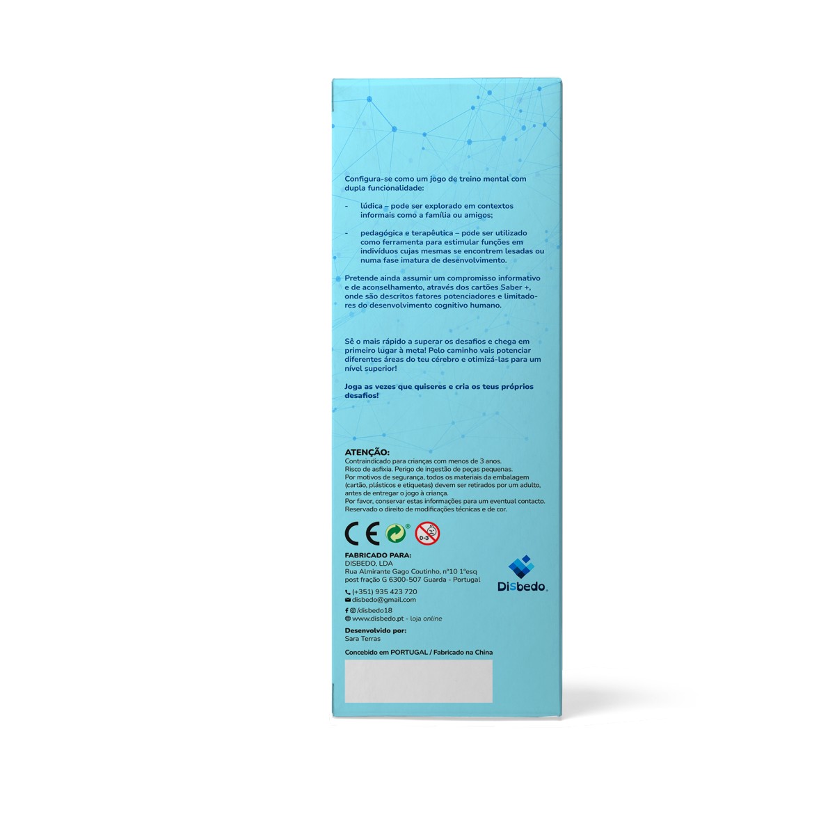 - 1 Tabuleiro com casas coloridas (correspondentes às cores das perguntas) e casas SABER+