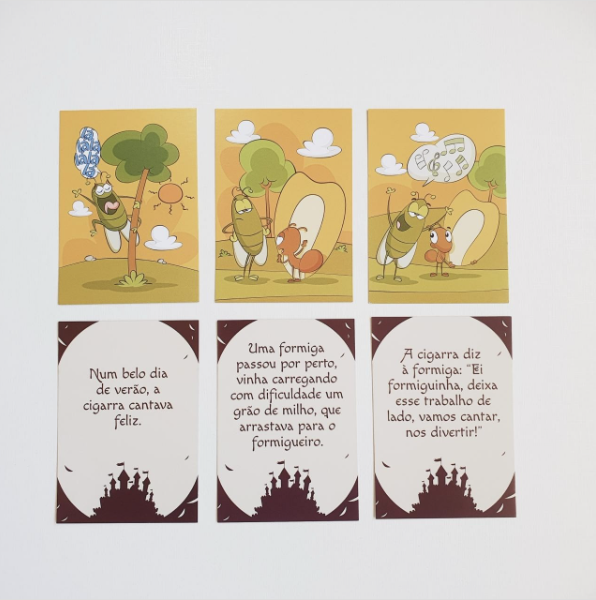 delas divididas em quadros de imagens e texto, para o trabalho com leitura e