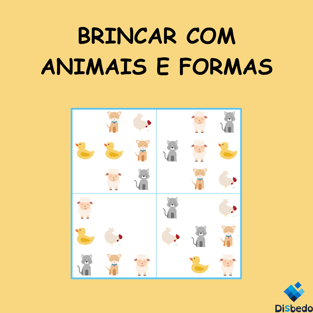 - 8 cartas, com exercícios de diferentes níveis de dificuldade (4 cartas com os Animais e 4 cartas com as Formas);