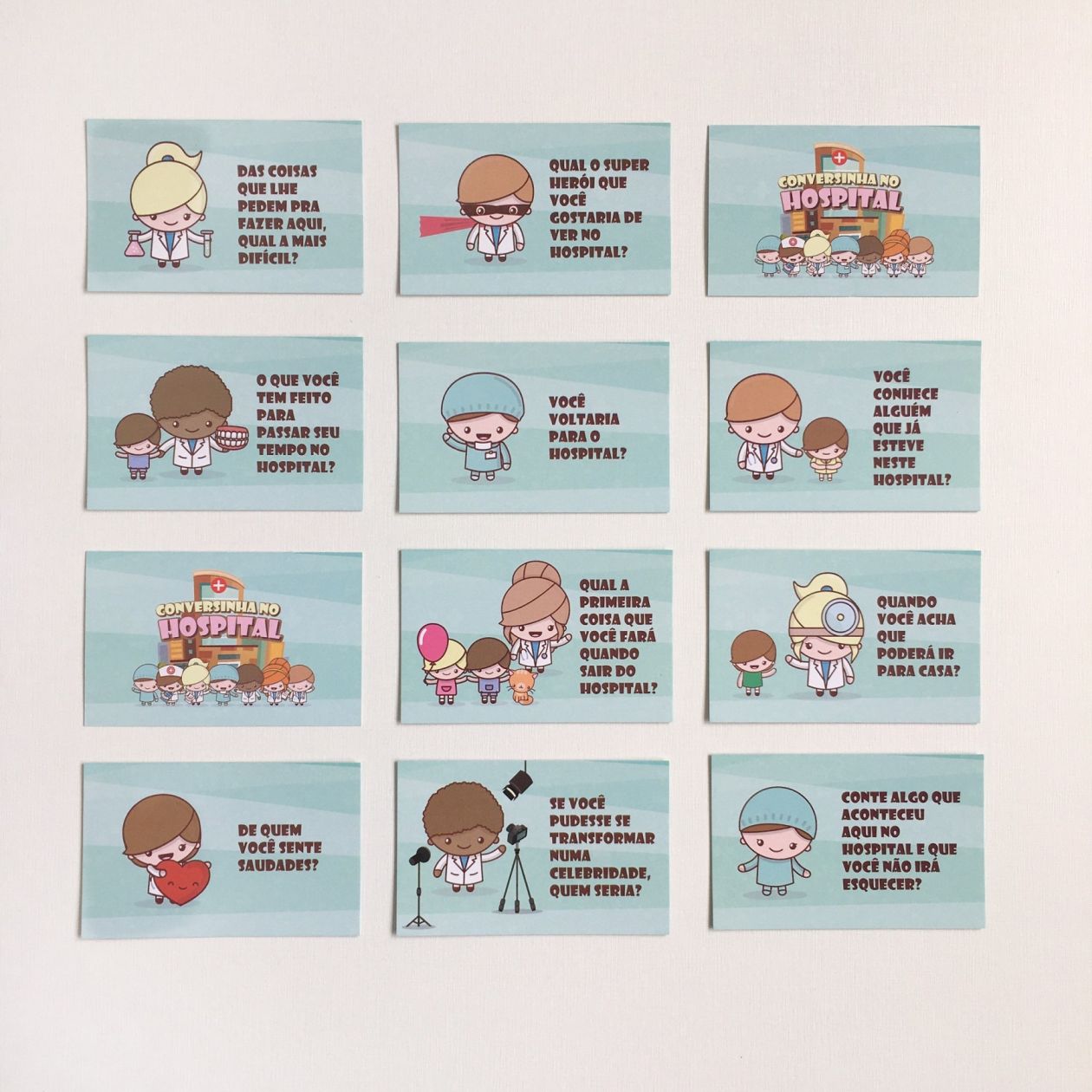 Diga três coisas que faria se fosse dono do hospital. Conversar, esclarecer, mas também distrair, descontrair, esse é o Conversinha no hospital, um material lúdico para ser usado no primeiro contacto do psicólogo com a criança em situação de hospitalização. Além de direcionar a primeira interação, facilita a fala da criança sobre coisas que a incomodam, assim como, sobre assuntos que a distraiam em relação às situações que acontecem no hospital.